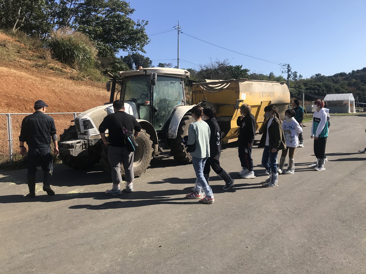 10月27日、畜産コース全員で、鳥取県最大規模の酪農業となる「株式会社みんなの牧場(鳥取市)」を視察しました。 現在、乳牛500頭の搾乳しており、将来的には600頭まで増やす予定だそうです。この農場には、県内初となるロータリーパーラー搾乳システムが導入されており、直径16メートルの回転台に50頭の乳牛を乗せ、回転しながら搾乳を終えることができます。また、全ての牛にセンサーが取り付けられており、牛の反芻(はんすう)回数をモニタリングすることにより、調子が悪い牛や発情牛を効率よく発見しているそうです。 牛の糞尿処理は、糞尿から発生するメタンガスを利用してバイオマス発電を行っており、この発電で得た電力を電力会社に売電をされていました。最終的に乾燥処理をした堆肥は再利用され、一部は「(株)東部コントラクター組合」と連携して地域の農地へ還元しているとのことでした。 経営規模の大きさ、システム化された作業体系、スマート農業の導入、地域循環型農業等、全てが驚きと刺激を受ける視察となりました。 ■ロータリーパーラー