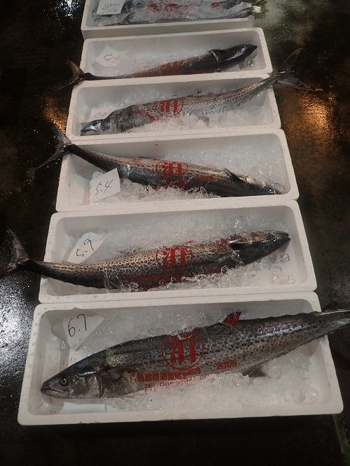 今週は、海模様もよく、引き縄釣りによるサワラが多く水揚げされていました。