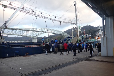 1月に入ってから水揚げの主役はツバスで、今日も8隻のうち5隻がツバスを水揚げしていました。年明けからここまでツバスの水揚量は1,800トン弱となっていて、平年比で350%とかなり水揚げされている印象です。一方で、ブリ、ハマチ、マルゴといった中~大型の銘柄は平年を大きく下回る水準で推移しています。