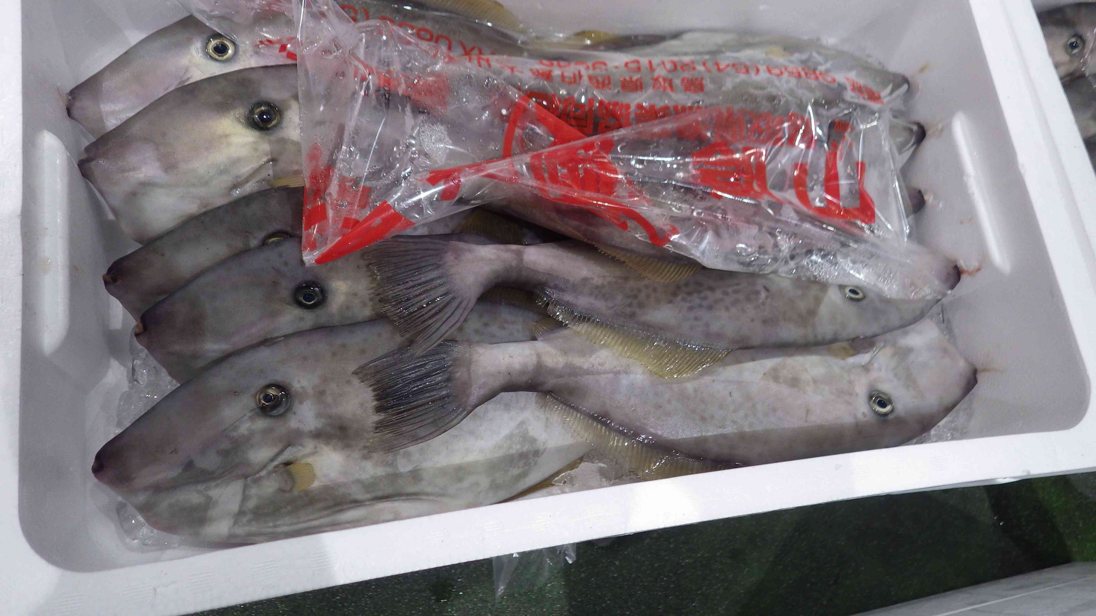 沿岸ものの水揚げもあり、鳥取県側の水揚物は御来屋の刺網のハマチ、定置網のウスバハギ(ウチワ・ノマレ)、ナンヨウカイワリ(南方系で珍しい)、境港のサワラなどが水揚げされていました。