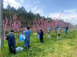 果樹コースではリンゴの花採り作業です。