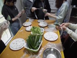 今年も鮮やかな笹の葉を使って、去年に続き2年目のちまき作りです。