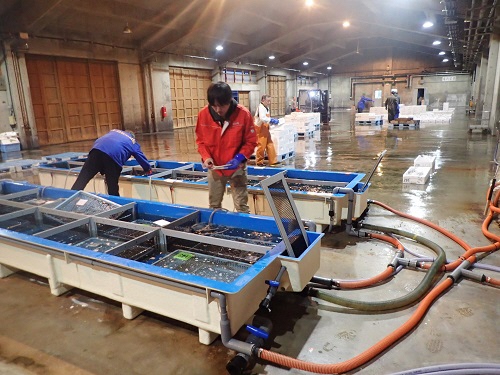 活魚のヒラメも出荷されていおり測定と魚体購入を行いました。