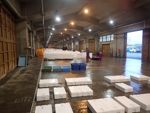 前日の晩が時化模様だったためか沿岸ものの出荷は少なかったですが、活魚のヒラメがあったので測定を行いました。