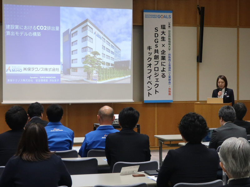 公立鳥取環境大学の学生が、県内企業の環境面の課題解決に向けて取り組む『SDGs共創プロジェクト』について、課題の内容や取組方針を説明・共有するキックオフを行いました。