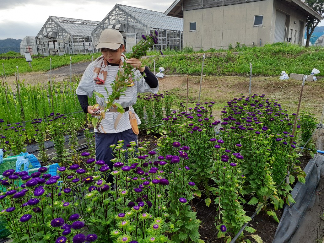 お盆までに倉吉市内の直売所3か所にシンテッポウユリ約1000束、アスター約400束を出荷しました。