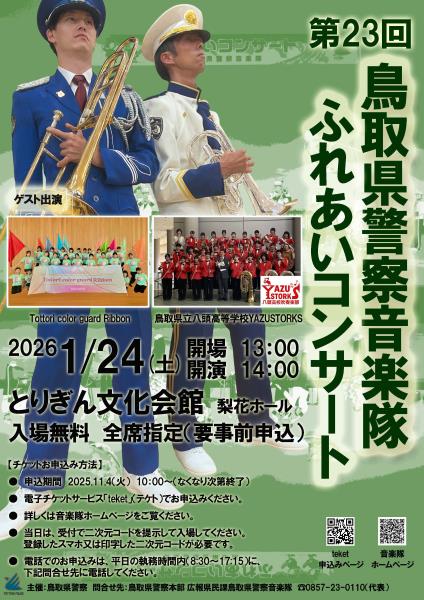 鳥取県警察本部 広報県民課鳥取県警察音楽隊 ☎0857‐23‐0110(代表)