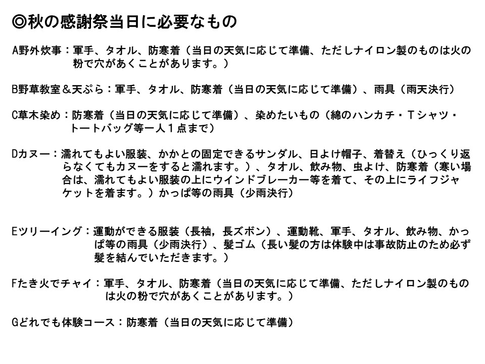 「秋の感謝祭前泊」スケジュール・「秋の感謝祭」持ち物(pdf:167KB)