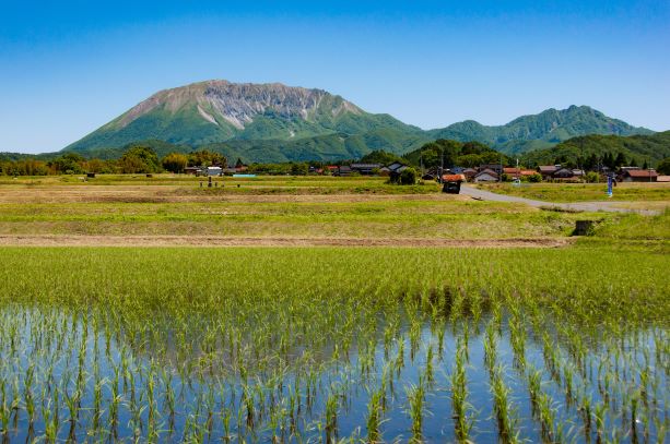南中する太陽でも夕陽でもいい、キラキラと光が反射すればこれほど見事なものはない貝田の棚田を横目に見たら、ずっと大山の山なみが見えている美用を登って御机へ。それから鏡ヶ成へは、山中とは思えないほど開けた笠良原(カサラバラ。記者が一番好きな音の地名)を一気に突っ切っていこうか。ああ、江府町はどこからだって大山が見えるんだ! そして左手には、まだ残る雪と白樺。