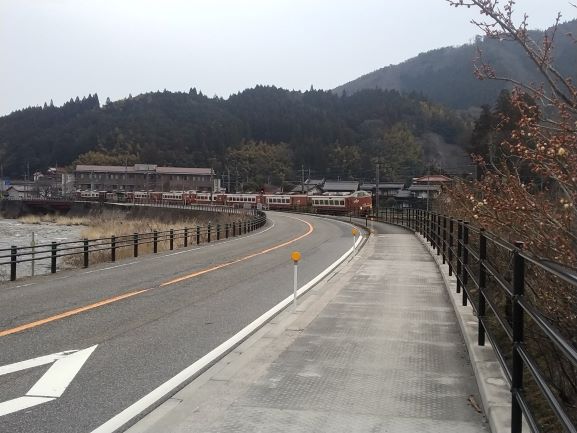 すぐそこに見えるのに、なかなかたどり着けないこの感じを「湾曲」ぶりが演出してくれるのですよ。 季節によっては観光列車『銀河』ともすれ違うことができます。