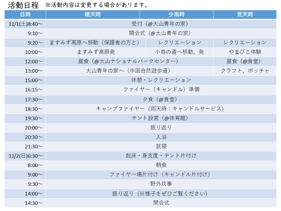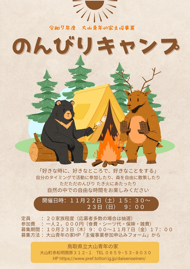 このたび、大山青年の家のイベント等の情報を、