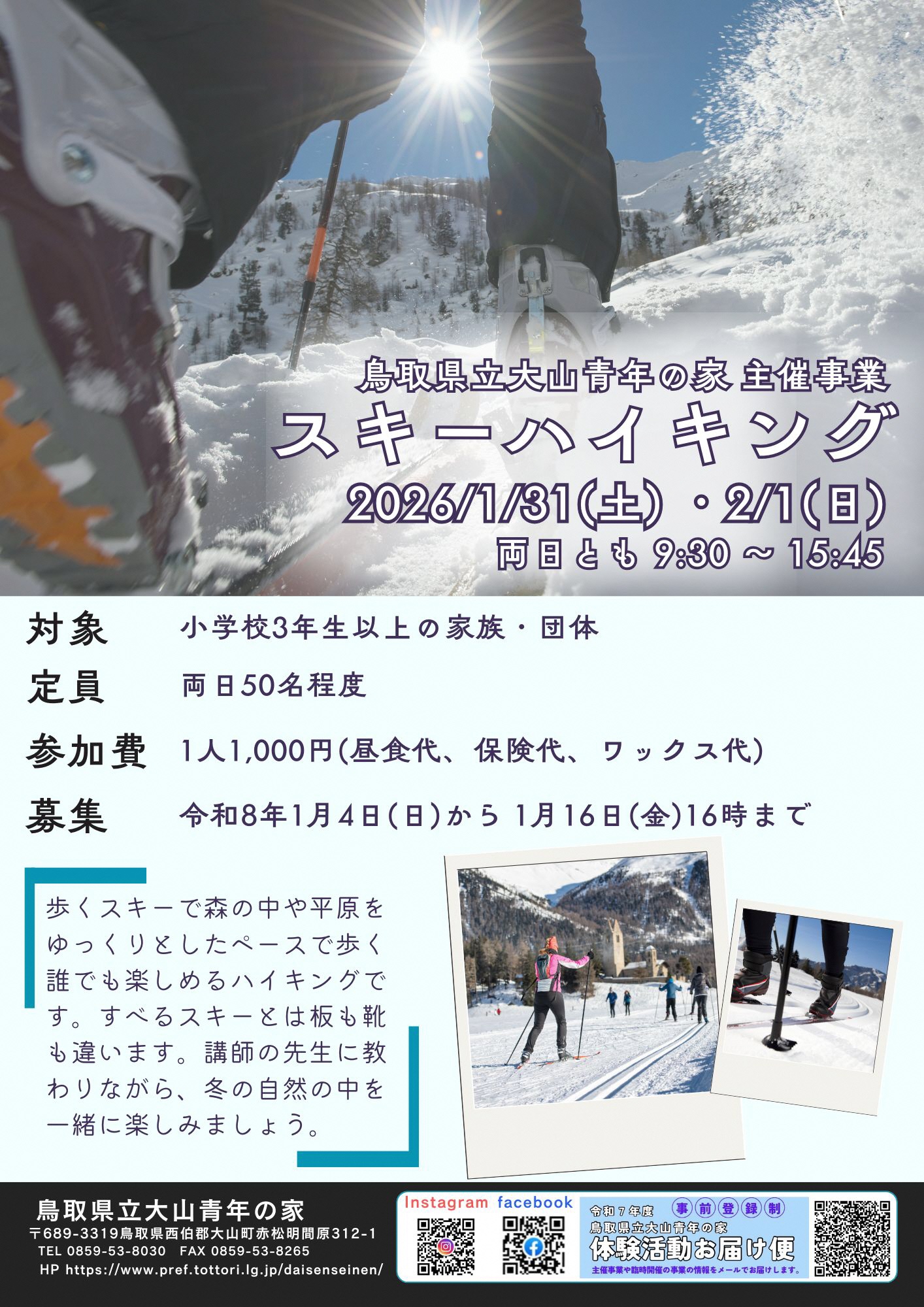 このたび、大山青年の家のイベント等の情報を、