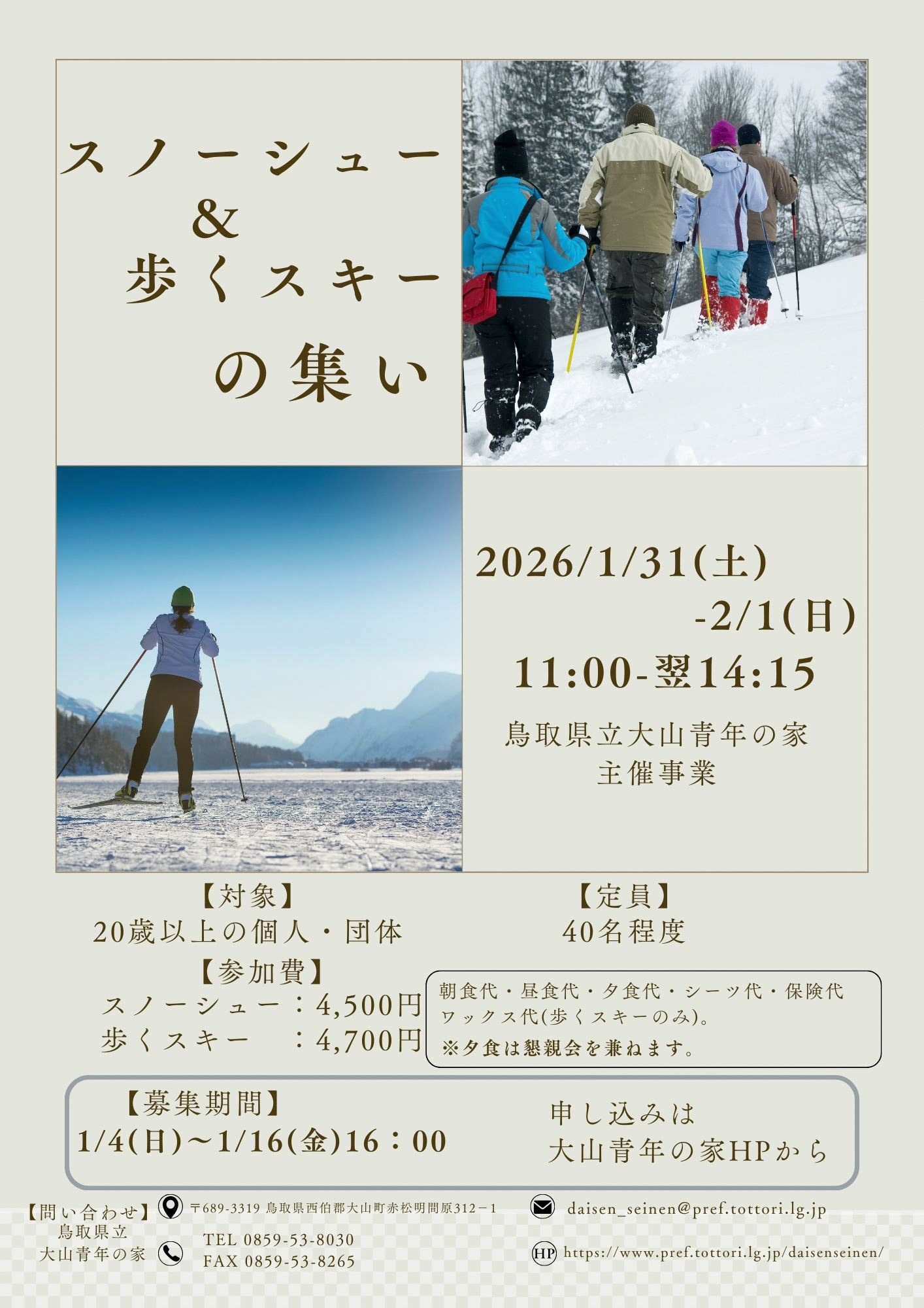 予約団体のキャンセル等により、次の期間に宿泊対応ができるようになりました。次の期間で宿泊を予定される方は、大山青年の家(0859-53-8030)までお電話で問い合わせください。