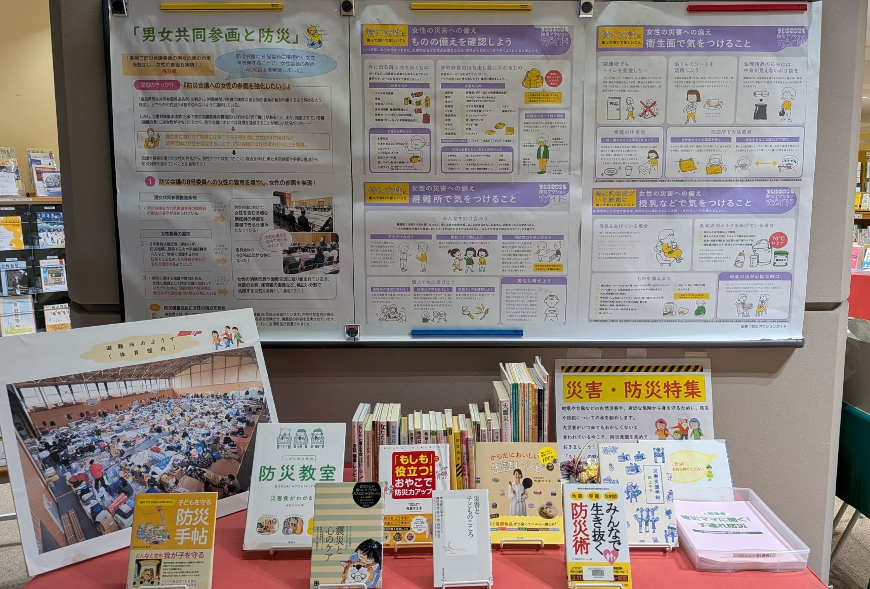 今回の展示は「男女共同参画」の視点から、みんなが安心できる防災について考えます。