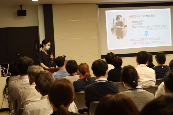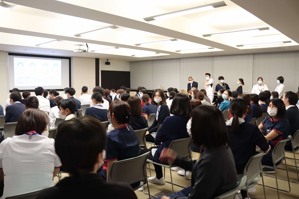 今年度1回目の接遇研修会が開催され、173名の参加がありました。研修ではマスク越しでも伝わる笑顔の確認をしました。自分の行動を振り返るよい機会となりました。