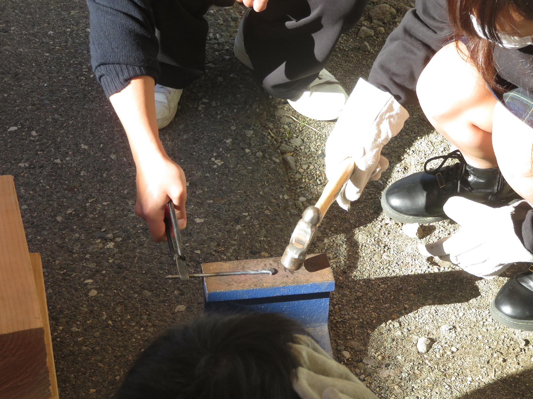 「鉄は熱いうちに打て」ということわざにあるとおり、炭火から取り出したときは高温で真っ赤になった釘も、叩いているとあっという間に温度が下がり、固くなってしまいます。そうなったら再度、炭火の中に入れて高温に熱しないと加工することはできません。