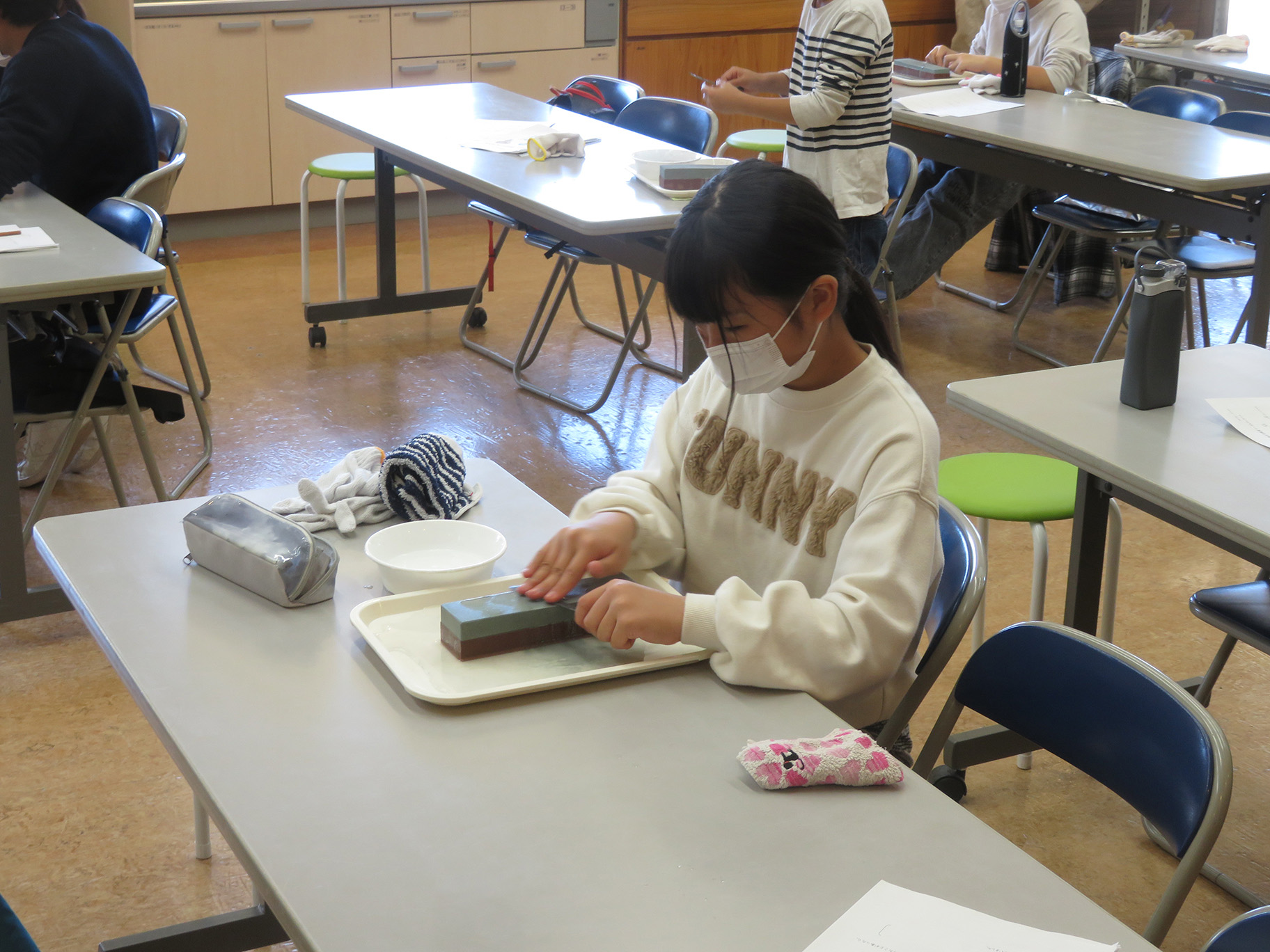 活動後のアンケートには「昔はこうやって道具を作っていたんだなと思いました。」「鉄を打つのが疲れたけど、面白かった。砥石で研ぐのが難しかった。」といった感想がありました。弥生時代の人々のくらしや苦労に触れる良い機会となったようです。