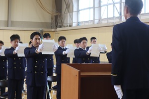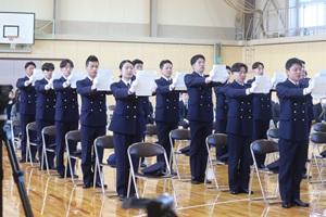 令和8年4月7日(火)に初任教育第33期の入校式を挙行した。女性1人を含む27人の新規採用職員は、6か月間の入校期間中、日々の訓練を通してどんなに過酷な災害現場に直面しても「決して負けることのない強い心と身体」の修得を目指す。同期の仲間と共に汗を流し、誰一人欠けることなく、卒業の日を迎えてほしい。