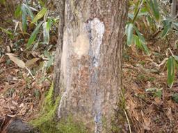 イノシシがモミに体をこすりつけた跡です。春の女神「ギフチョウ」