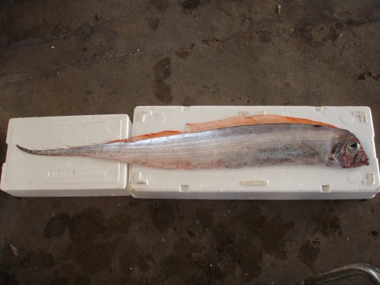市場にいってみるとリュウグウノツカイと同じアカマンボウ目の「サケガシラ」という魚でした。