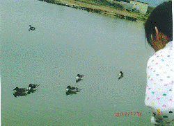 ・穏やかで静かな雰囲気の中、水鳥の元気な鳴き声がしていた。 ・調査中、水鳥たちが寄って来た。