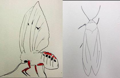羽を広げたのを横からみたものと、羽を閉じた状態で上からみたもの。