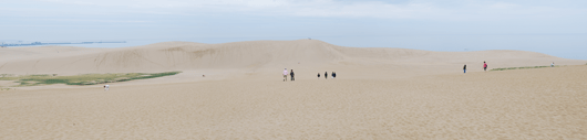 砂丘上空は薄雲が広がっていますが、湿度が高く蒸し暑くなっています。少し青空も見え始めていますので、しばらくすると晴れ間が広がると思います。今日も真夏日が予想されます。熱中症に要注意です。砂丘にお越しの際には、帽子や飲み物をお忘れなく。