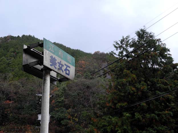 日野川の岸辺にこじんまりとした集落が現れました。山ぎわにある小径をゆったりと散歩していると、標識にいきなり「美女石」と書かれていた。これは分かりやすい!