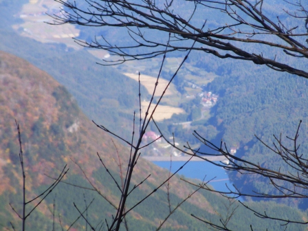 かなり登ってきました。遠くに自然の家が見えます。