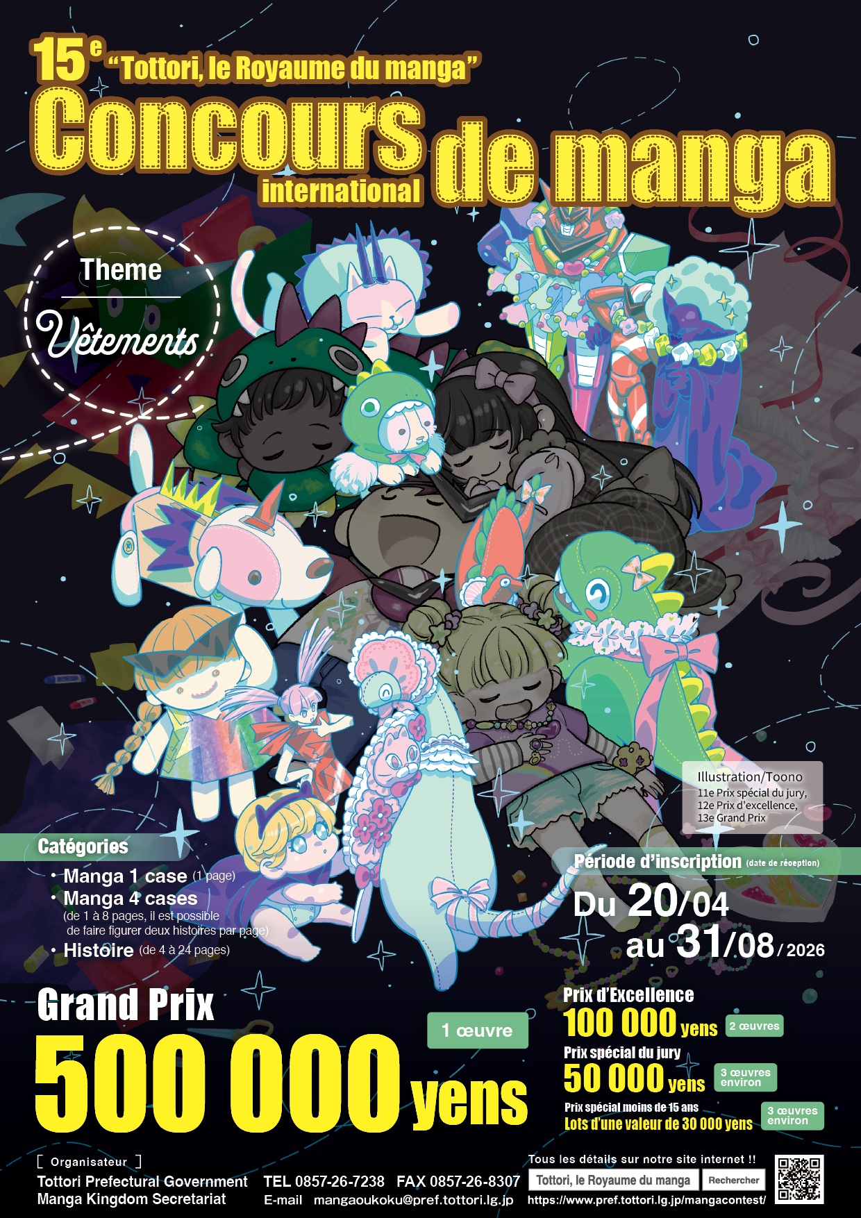 La cérémonie de remise de Prix, à laquelle les lauréats du concours seront conviés, se tiendra en février 2027, dans le département de Tottori.(Limite maximale.)
