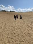 まず向かったのは砂の美術館。今期のテーマは日本で、仏像、神社仏閣、歴史上の人物、風刺画等たくさんの砂像がありました。どの作品も素晴らしくその迫力に圧倒されました。その後砂丘へ移動。中にはリフトに乗って移動する人もありました。短い距離ですが、思いのほか楽しかったようです。もちろん目ざすは馬の背の頂。砂に足を取られながらも頑張って登りました。旅行気分を味わったり、仲間との一体感、解放感を感じたりすることができ、とても楽しい遠足でした。
