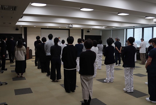 清元院住職 井上英之先生をお招きして研修会を開催しました。椅子座禅の体験から始まり、おりんの音が心を静め、井上先生のお話が始まりました。「正義の反対は別の正義」「自分の心は自分しだい 人のせいにしないと楽になる」などエピソードを交えながら話されました。約100名の参加者が深く頷きながら話を聴いたり、涙を流しながら話を聴いたり・・・それぞれが、心を整える時間になりました。